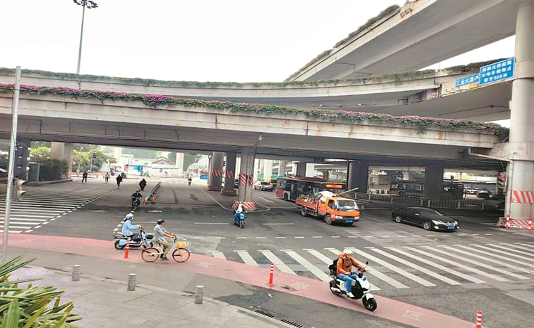 针对工业大道部分路段非机动车道宽度不足的问题,本次改造创新设置“共享车道”,将最右侧机动车道与既有非机动车道合并,利用1.1米高的隔离护栏与左侧车道分隔,形成宽度不低于3.25米、限速40km/h的连续通行空间。改造后,非机动车通行量提升50%以上,机动车通行未受明显影响,较好地平衡了两类车辆的通行需求。