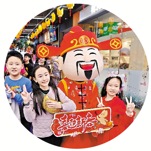 小朋友与商场里的“财神爷”合影。广州日报全媒体记者莫伟浓摄