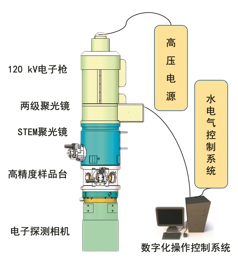 据介绍,团队自研的纳米晶体结构快速解析仪主要由高压电源、120千伏电子枪、两级聚光镜、STEM聚光镜、高精度样品台、电子探测相机和数字化控制操作系统等关键部分组成。