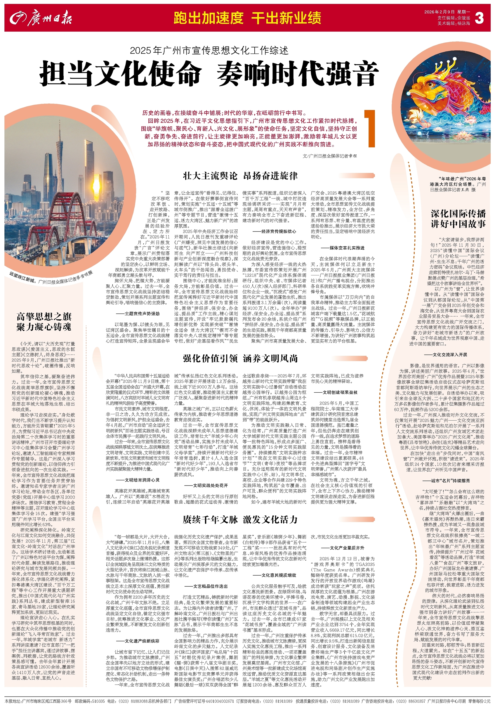 历史的画卷,在接续奋斗中铺展;时代的华章,在砥砺前行中书写。 回眸2025年,在习近平文化思想指引下,广州市宣传思想文化工作紧扣时代脉搏,围绕“举旗帜、聚民心、育新人、兴文化、展形象”的使命任