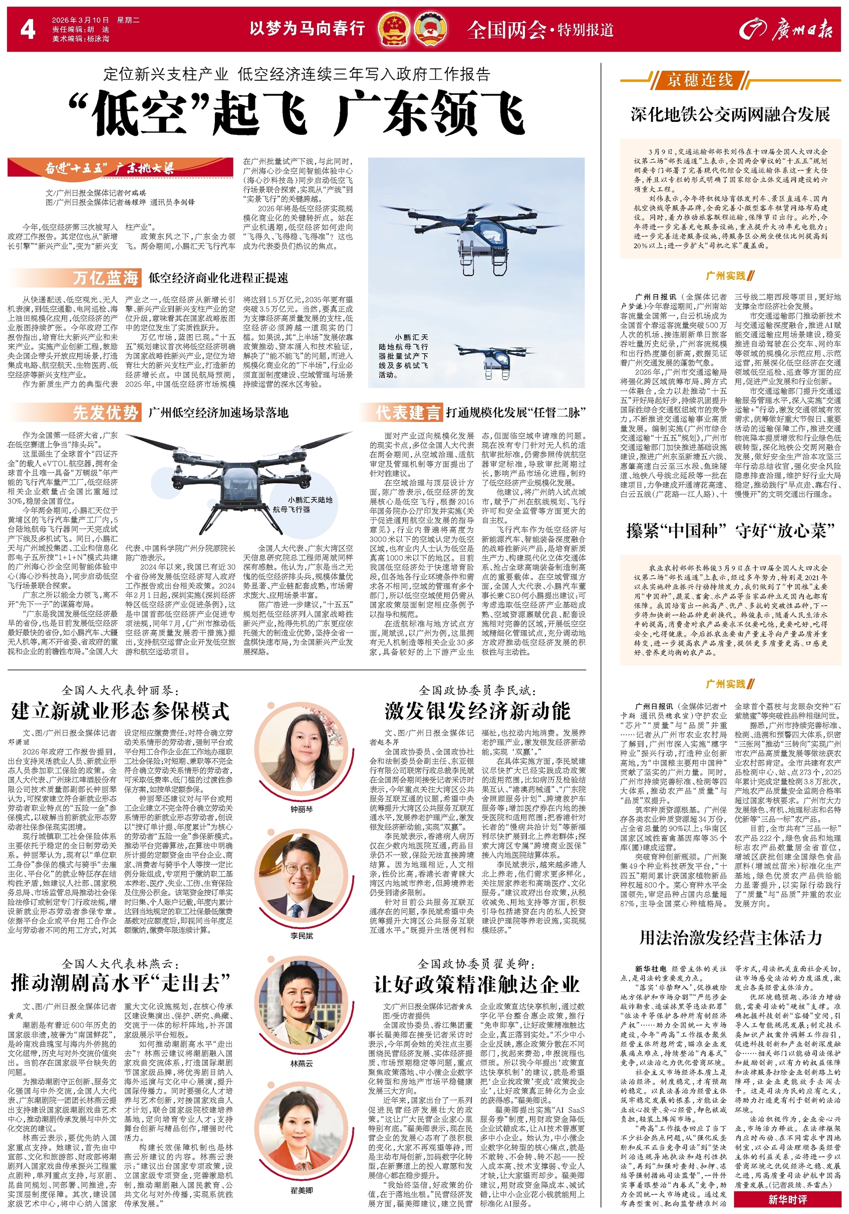 - “低空”起飞 广东领飞 奋进“十五五” 广东挑大梁 文/广州日报全媒体记者何瑞琪 图/广州日报全媒体记者杨耀烨 通讯员李剑锋 今年,低空经济第三次被写入政府工作报告。其定位也从“新增长引擎”“新兴产业