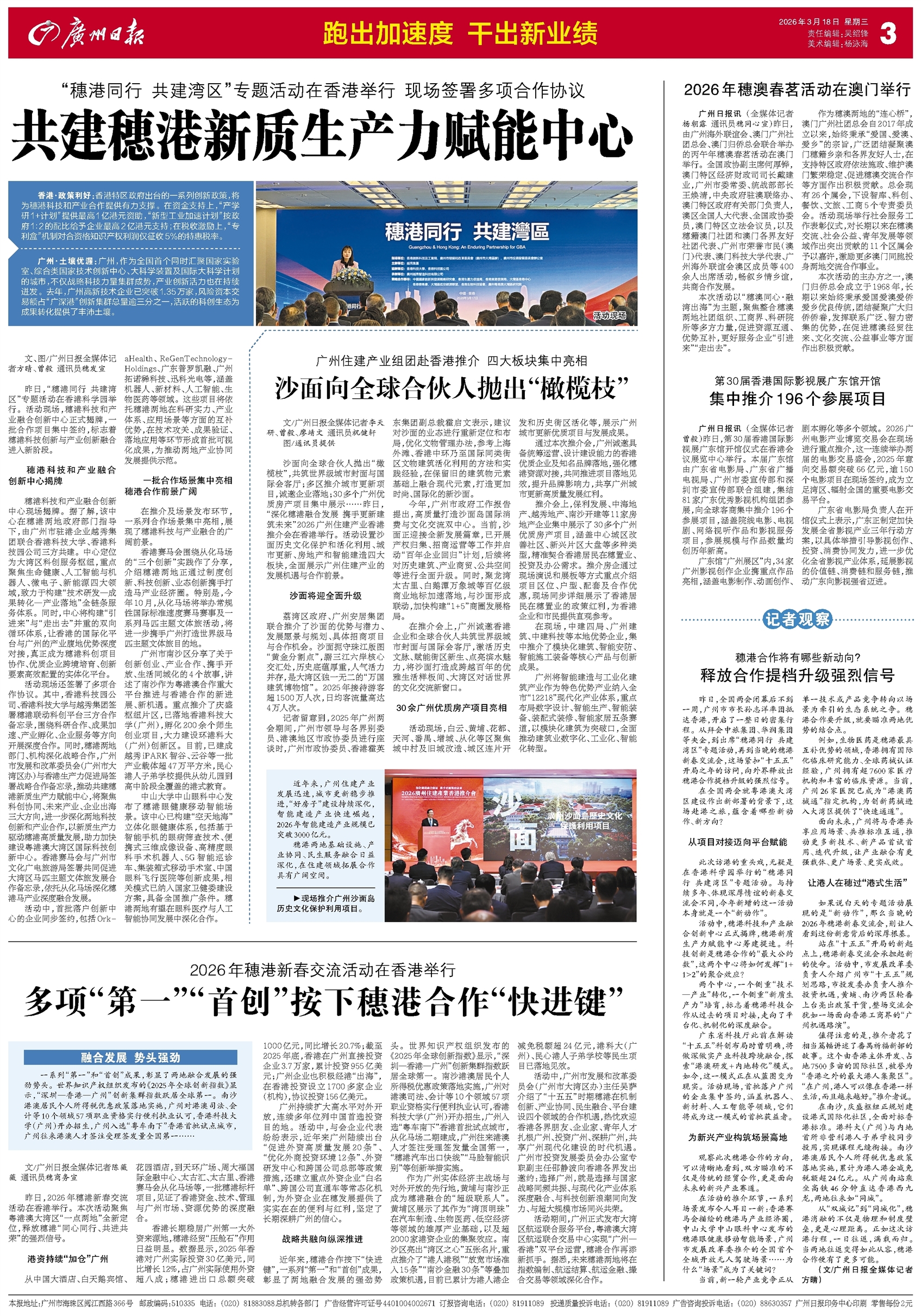 活动现场还签署了多项合作协议。其中,香港科技园公司、香港科技大学与越秀集团签署穗港联动科创平台三方合作备忘录,围绕科研合作、成果加速、产业孵化、企业服务等方向开展深度合作。同时,穗港两地部门、机构深化战略合作,广州市发展和改革委员会(广州市大湾区办)与香港生产力促进局签署战略合作备忘录,推动共建穗港新质生产力赋能中心,将聚焦科创协同、未来产业、企业出海三大方向,进一步深化两地科技创新和产业合作,以新质生产力驱动穗港高质量发展,助力加快建设粤港澳大湾区国际科技创新中心。香港赛马会与广州市文化广电旅游局签署共同促进大湾区马匹主题文体旅发展合作备忘录,依托从化马场深化穗港马产业深度融合发展。