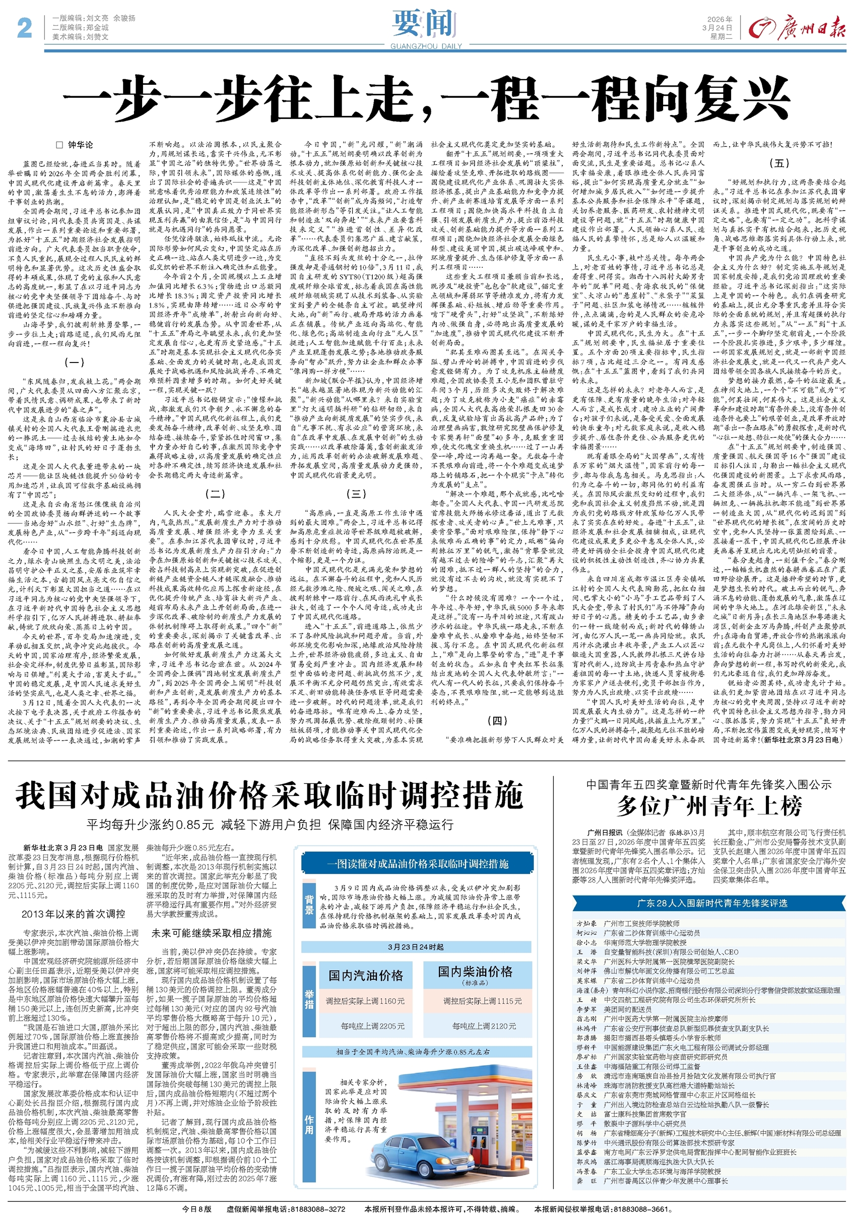 - 一步一步往上走,一程一程向复兴 蓝图已经绘就,奋进正当其时。随着举世瞩目的2026年全国两会胜利闭幕,中国式现代化建设开启新篇章。春天里的中国,激荡着生生不息的活力,澎湃着干事创业的热潮。 全国两会期间,习近平总书记参加团组