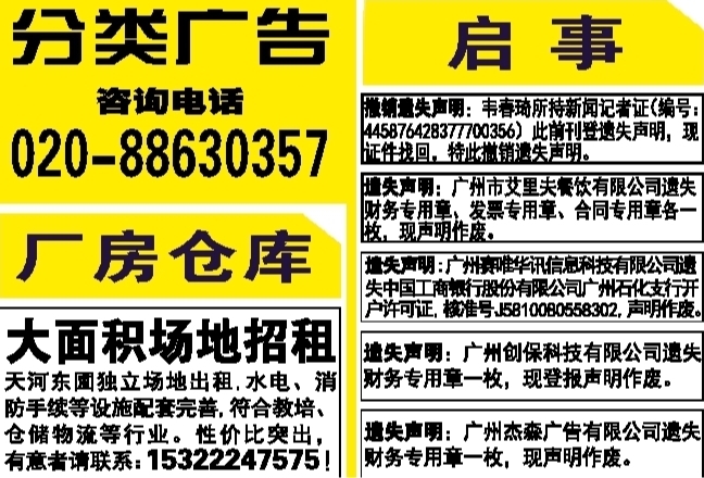 广州日报综合 A6分类广告 2026-03-25 2 2026年03月25日 星期三