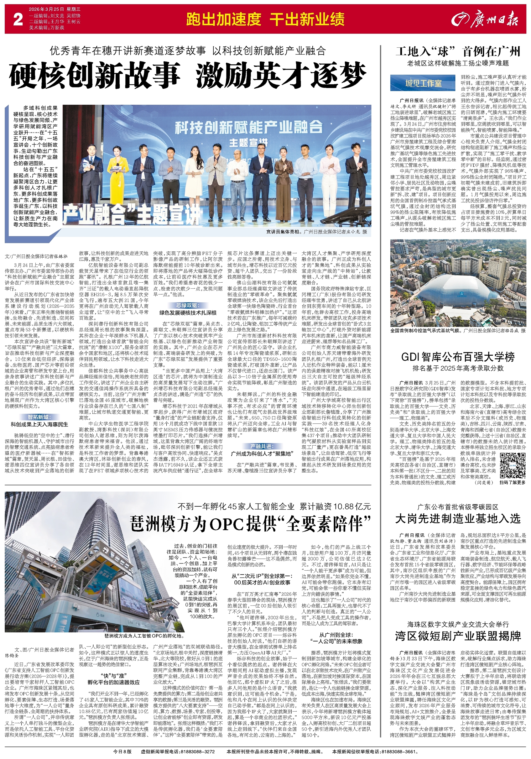 - 硬核创新故事 激励英才逐梦 多域科创成果硬核呈现、核心技术与绿色发展同频、产学研用赋能湾区产业跃升……在“十五五”开局之年,一场宣讲会,十个创新故事,生动勾勒出广东科技创新与产业融合的奋进图景。 站在“十五五”新起点,广