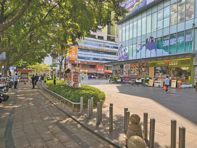 就在去年,荔湖大厦门口还不是这番秩序井然的景象。其负责人黄泽秀表示,大厦临近中山八路地铁站,上班族习惯把电动自行车停在进站口,加上商户和顾客也有停车需求,大厦门口“乱摆卖”多、电动自行车多,非常拥挤、混乱。最近,在昌华街道的牵头下,大厦积极配合,做好“门前三包”工作,引导车辆有序停放,同时将大厦门口场地腾出供行人行走。