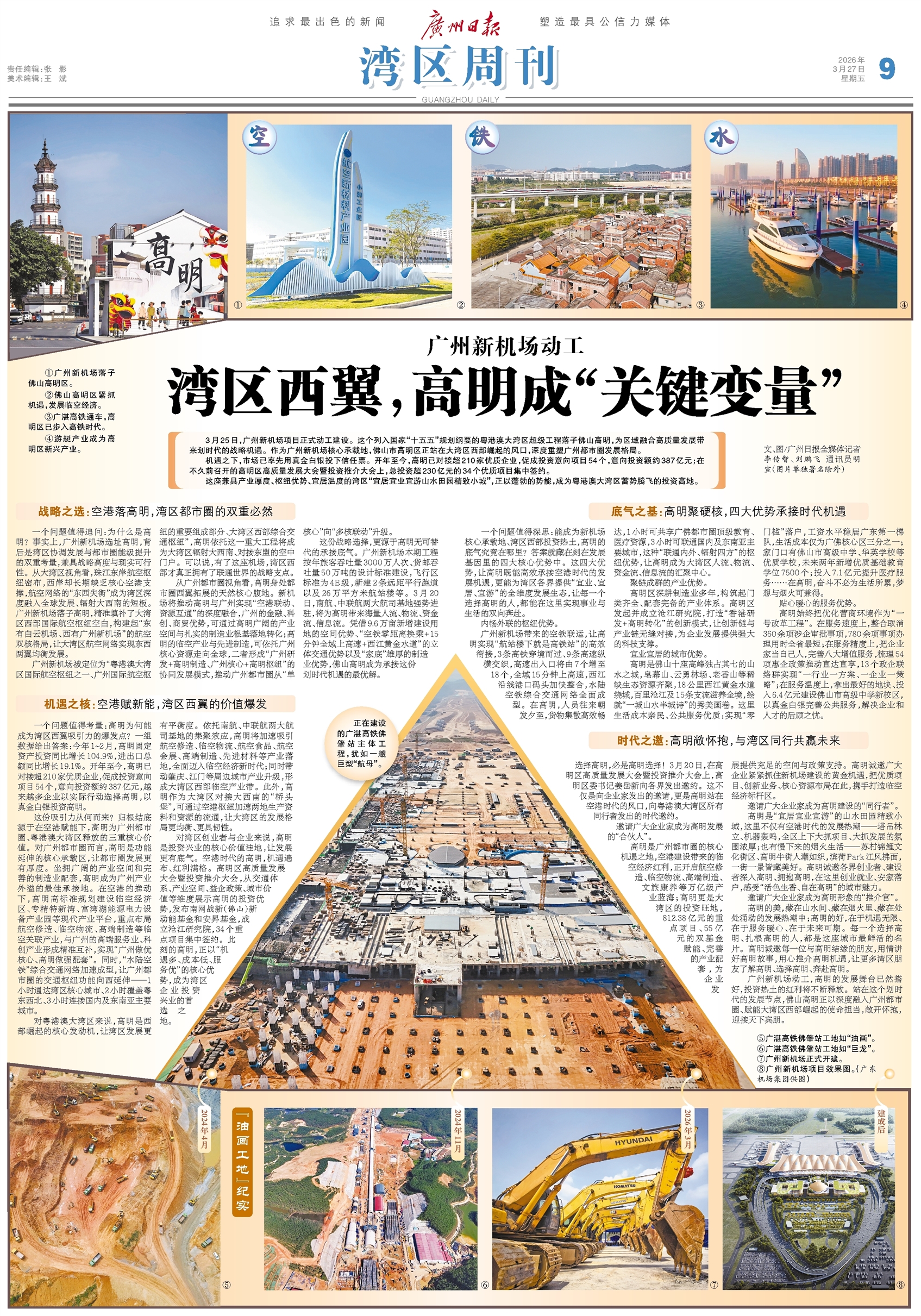 3月25日,广州新机场项目正式动工建设。这个列入国家“十五五”规划纲要的粤港澳大湾区超级工程落子佛山高明,为区域融合高质量发展带来划时代的战略机遇。作为广州新机场核心承载地,佛山市高明区正站在大湾