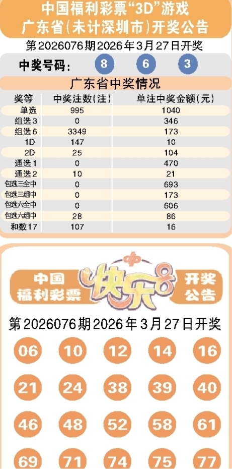 彩票开奖公告