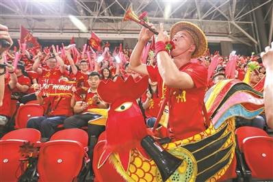 广州队获胜离不开现场助威团的加油助威,其中,来自广州体育职业技术学院的师生们一起喊哑了嗓子,但大家欢乐无比,感觉和球队一起取得了胜利。