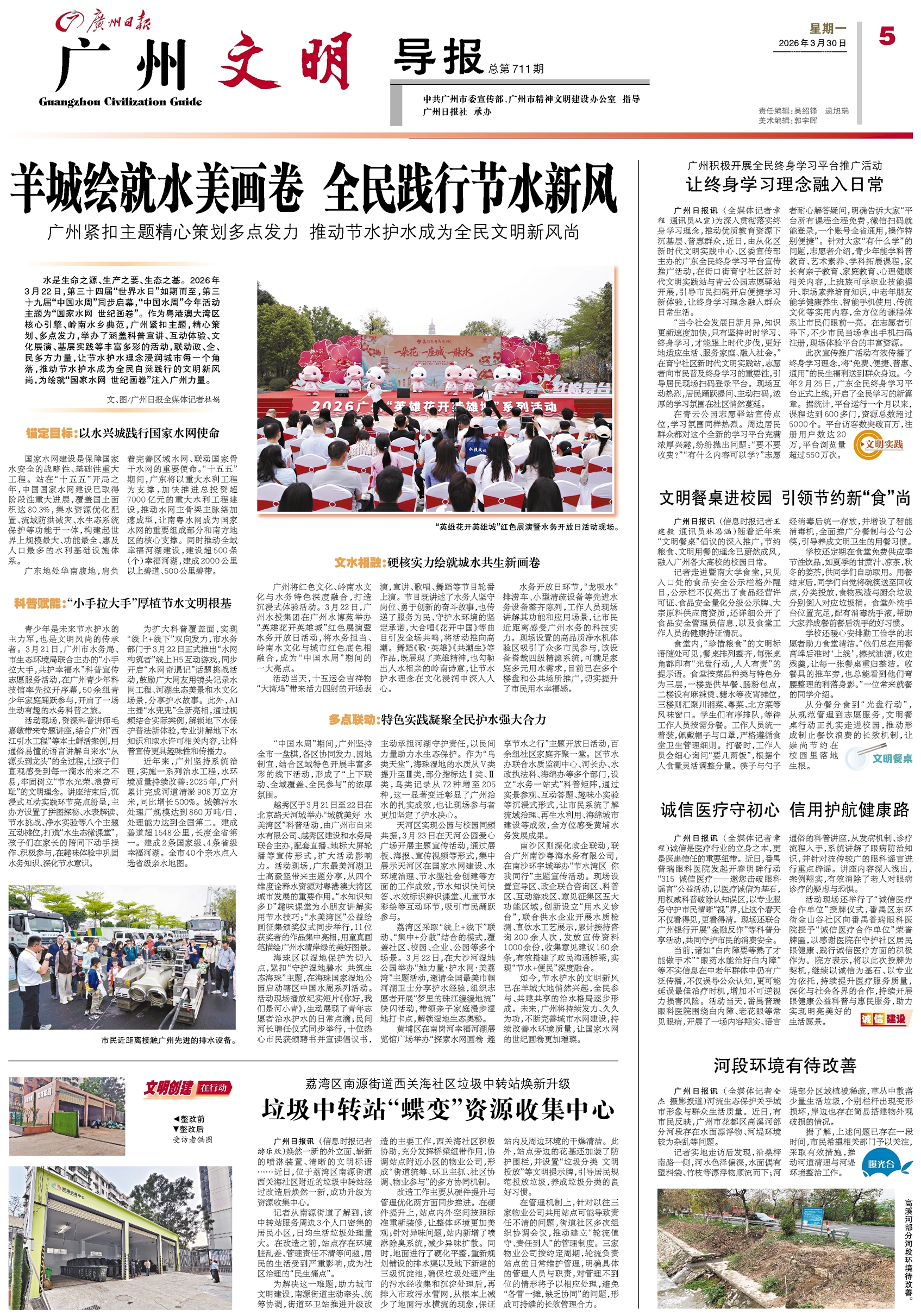 - 羊城绘就水美画卷 全民践行节水新风 水是生命之源、生产之要、生态之基。2026年3月22日,第三十四届“世界水日”如期而至,第三十九届“中国水周”同步启幕,“中国水周”今年活动主题为“国家水网 世纪画卷”。作为粤港澳大湾区核心引擎、