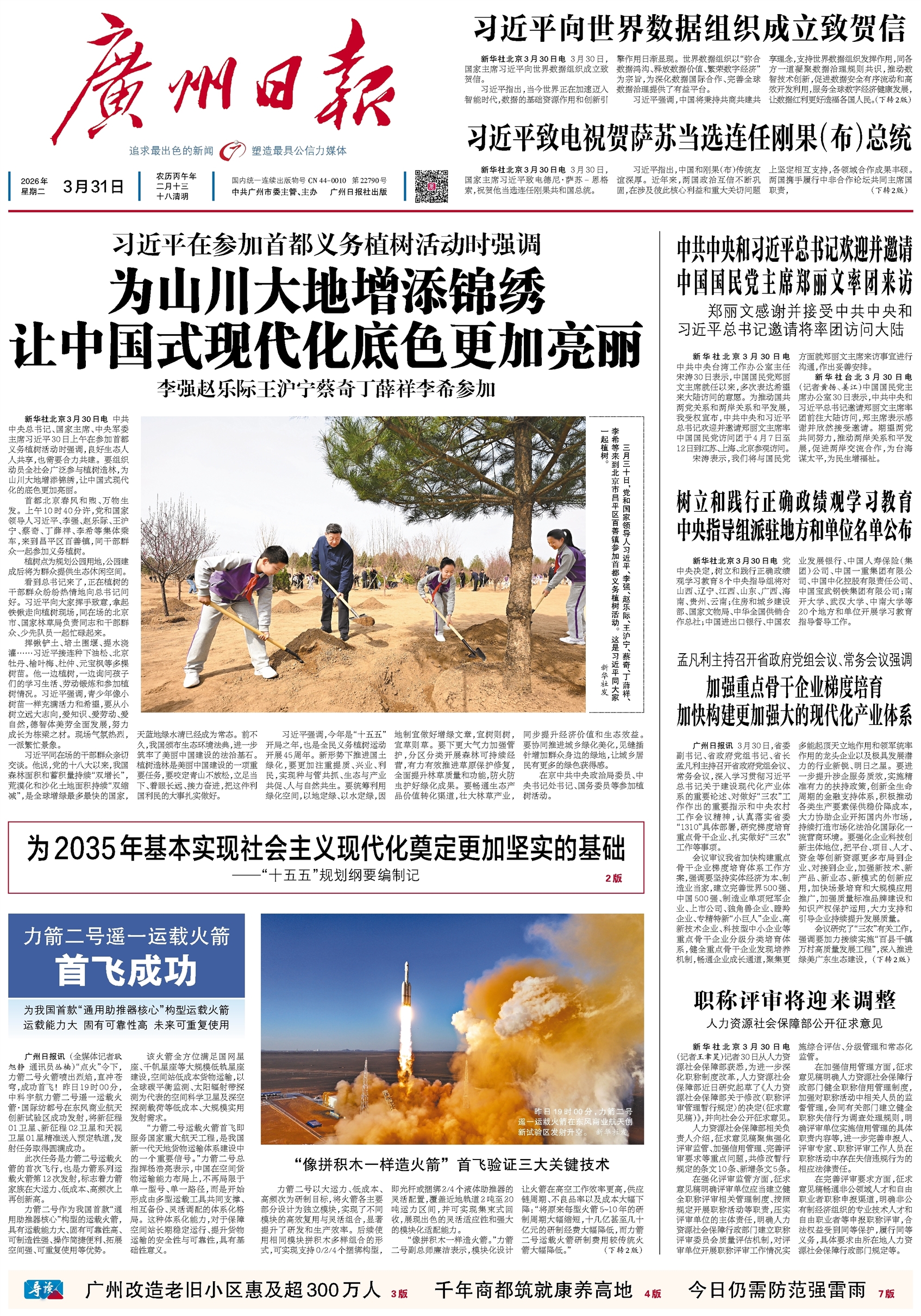 广州日报头版 A1力箭二号遥一运载火箭首飞成功 耿旭静2026-03-31 2 2026年03月31日 星期二
