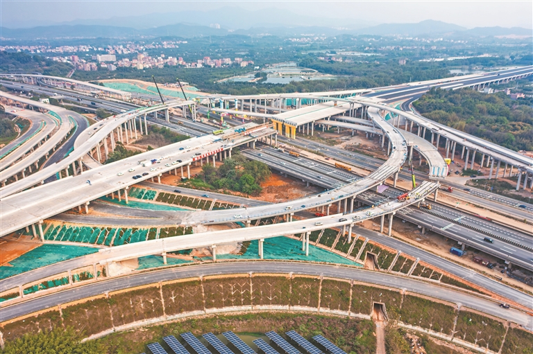 连珠枢纽互通位于花都区赤坭镇连珠村,作为全线规模最大的“高接高”交通转换枢纽,是广州段的控制性节点。