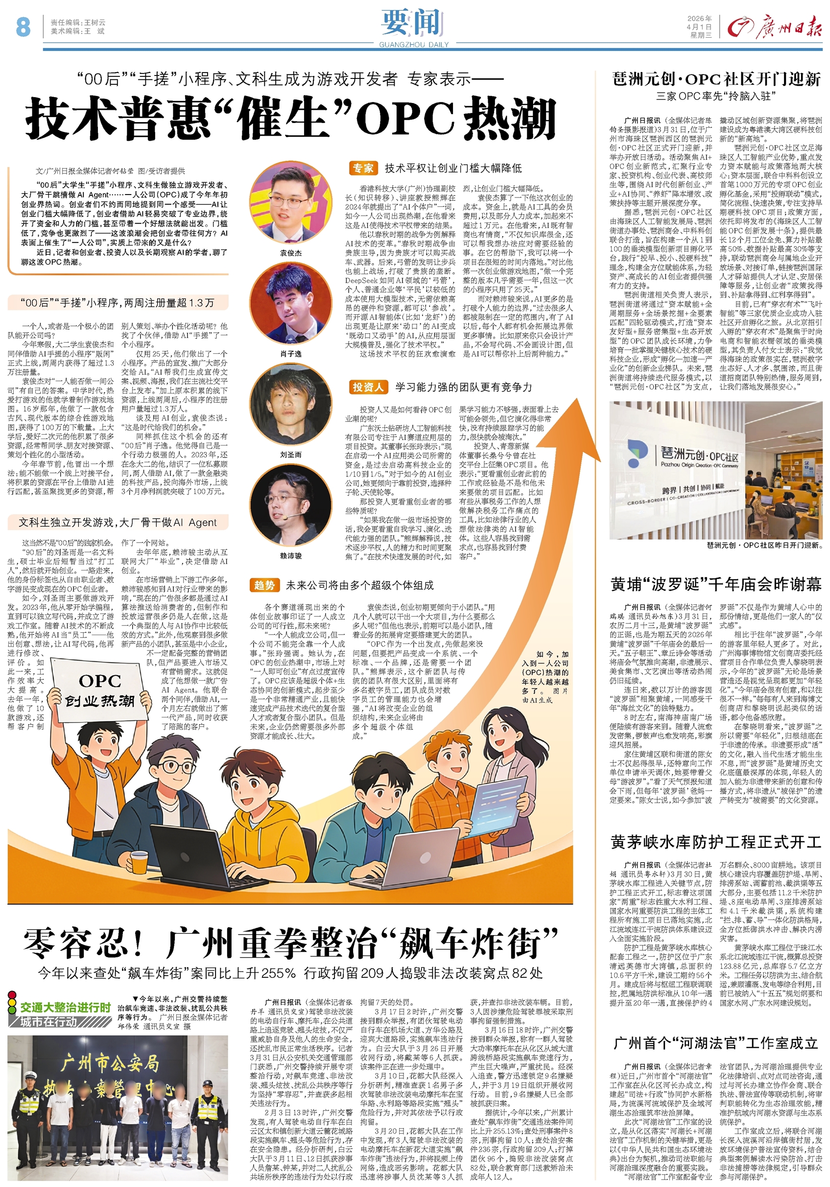 - 琶洲元创·OPC社区开门迎新 广州日报讯 (全媒体记者陈钧圣摄影报道)3月31日,位于广州市海珠区琶洲西区的琶洲元创·OPC社区正式开门迎新,并举办开放日活动。活动聚焦AI+OPC创业新范式,汇聚行业专家、投资机构、创业代表、