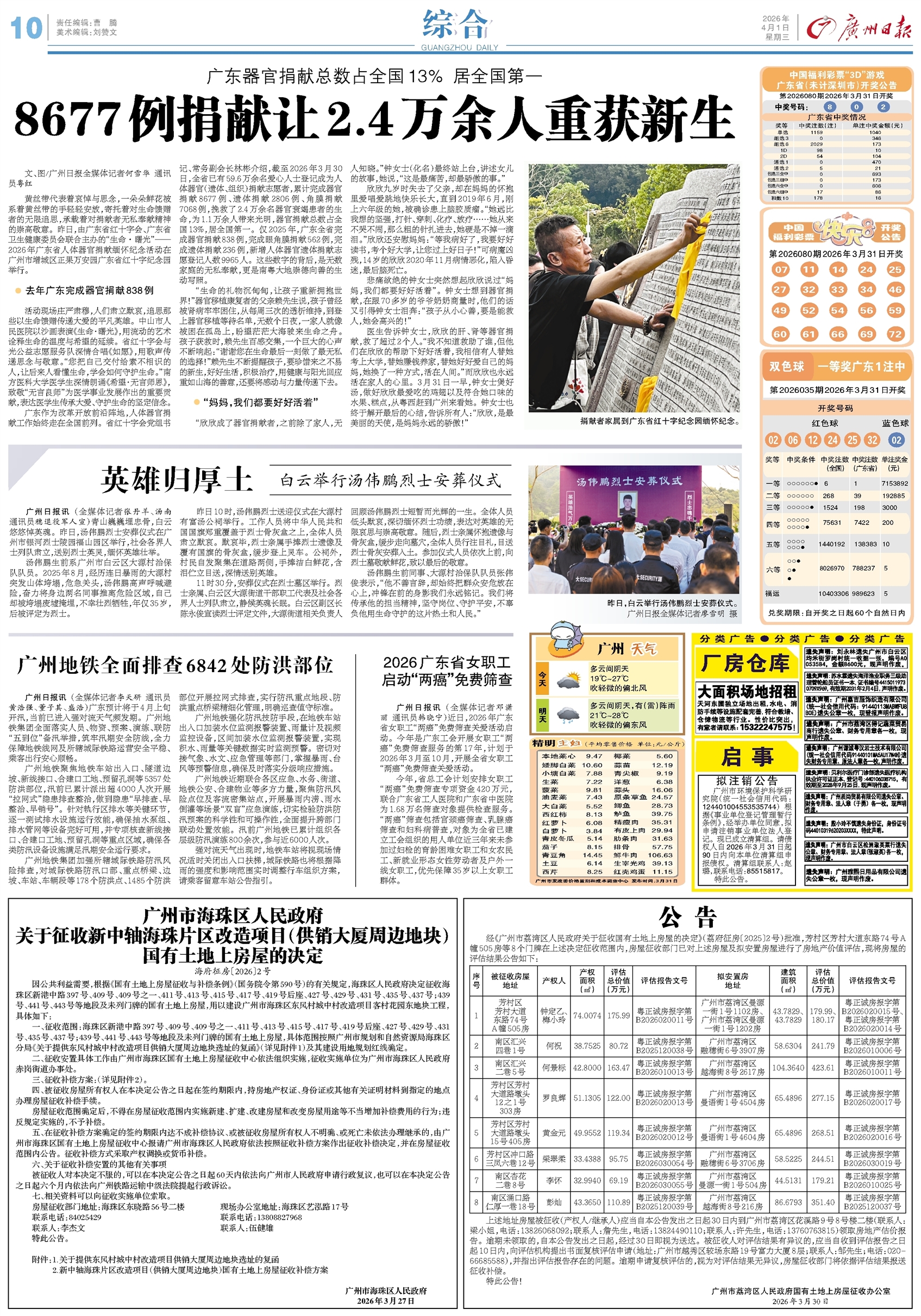 - 8677例捐献让2.4万余人重获新生 文、图/广州日报全媒体记者何雪华 通讯员粤红 黄丝带代表着哀悼与思念,一朵朵鲜花被系着黄丝带的手轻轻安放,寄托着对生命馈赠者的无限追思,承载着对捐献者无私奉献精神的崇高敬意。昨日,由广东省红十