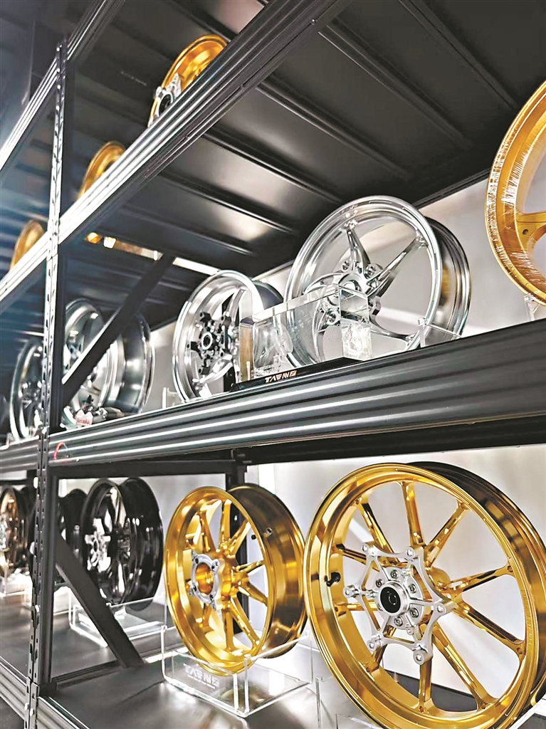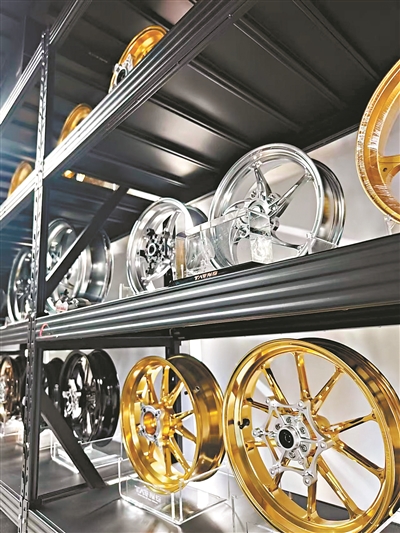王永兴表示,在专业摩托车改装领域,轮毂是提升操控性排名第一的部件,其重要性远超减震、刹车。而核心秘诀在于轻量化,“我们的技术让冠军车型820RR的轮毂比传统产品轻了1/2到1/3,甚至比全球顶级的意大利品牌同类产品更轻。”王永兴引用了一句行业内的经典理论:簧下一公斤,整车十马力。减轻轮毂这种“簧下质量”的重量,对车辆动态性能的提升立竿见影。