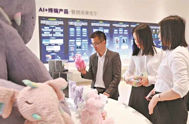 茶山镇是毛绒玩具的重要生产基地,该镇自2025年起率先布局“AI+毛绒玩具”新赛道,目前有20多家企业研发推出自有IP的AI玩具,形成先发优势。其中,裕洪电子的原创IP“丸宝”上线3天销量突破2万件;俊欧玩具的“乐兜兜”“绒糯糯”系列AI毛绒玩具在东南亚热销;玩乐童话新研发设计的AI玩具Baby精灵也即将上市。茶山镇相关负责人告诉记者,该镇通过强化空间、科技、技改、人才、市场、金融“六个赋能”,推动玩具产业向高端化、智能化、集群化转型。其中包括在横江现代化产业园区已建成14万平方米镇属物业,打造“AI玩具产业园”,为产业发展提供空间支撑;研究制定玩具产业倍增发展扶持措施,包括加大对研发投入的奖励,支持AI玩具核心部件购置、算力租用和原创设计投入等。