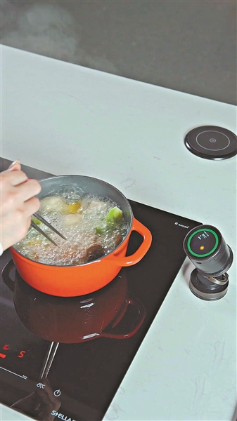 “小德小德,请帮我打开电磁炉,并调到最大火力……”家电展区,一款融合AI技术的电磁炉,通过语音交互便能轻松完成烹饪。据了解,该产品搭载多模态大模型,支持中、英、粤语无缝切换,可精准响应语音指令,完成火力调节、定时开关等操作;同时提供了海量菜谱教程、烹饪步骤指引,能深度理解用户需求。