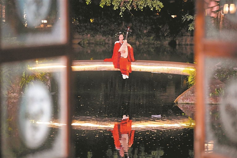夜游兰圃享雅趣 名人NPC与游客趣味互动