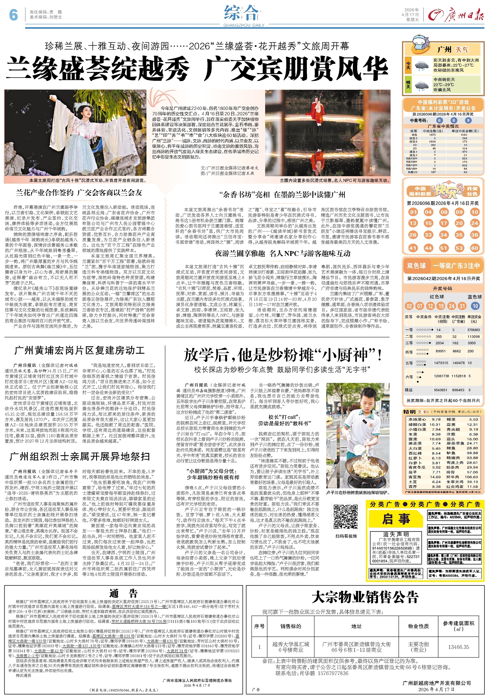 - 放学后,他是炒粉摊“小厨神”! 广州日报讯 (全媒体记者何瑞琪 通讯员郑嘉俊摄影报道)傍晚,广州黄埔区的广州开元学校旁一小卖部外,五年级学生卢子川身着校服,在简易炉灶前帮父母挥舞锅铲炒粉,招呼客人。这方炒粉摊成了他的“第二课堂